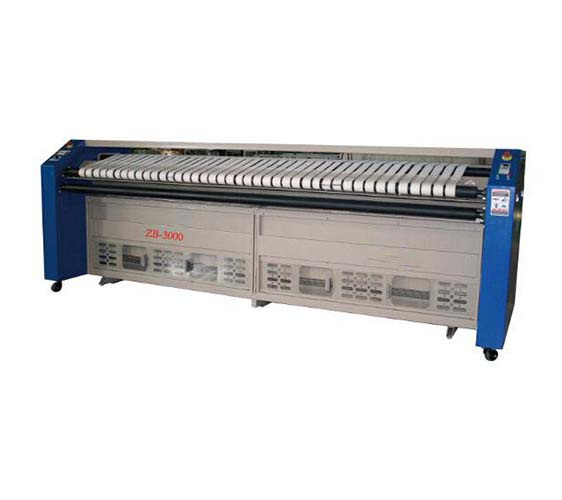ZB-3000 is a is a linen feeder with a compact and space saving design, aiming to improve ironer performance and lower labor cost.  It usually installed in conjunction with a high speed ironer, and the operator will place the linen on the feeder inlet and the feeder will feed it into ironer with suction.
